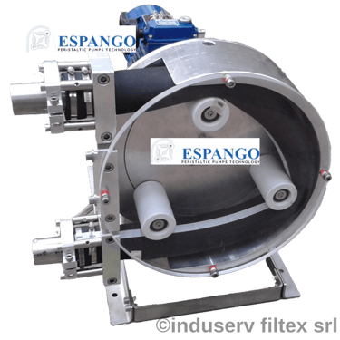 The IPI150 model is our most popular peristaltic pump, offering flow rates from 25 to 365 l/h and pressures up to 6 Bar. All models are designed to be supplied with 2 rollers (standard) or 3-4 rollers (upon request), featuring a leading brand worm gearbox and three-phase 230/400 Volt IP55 protected electric motors.